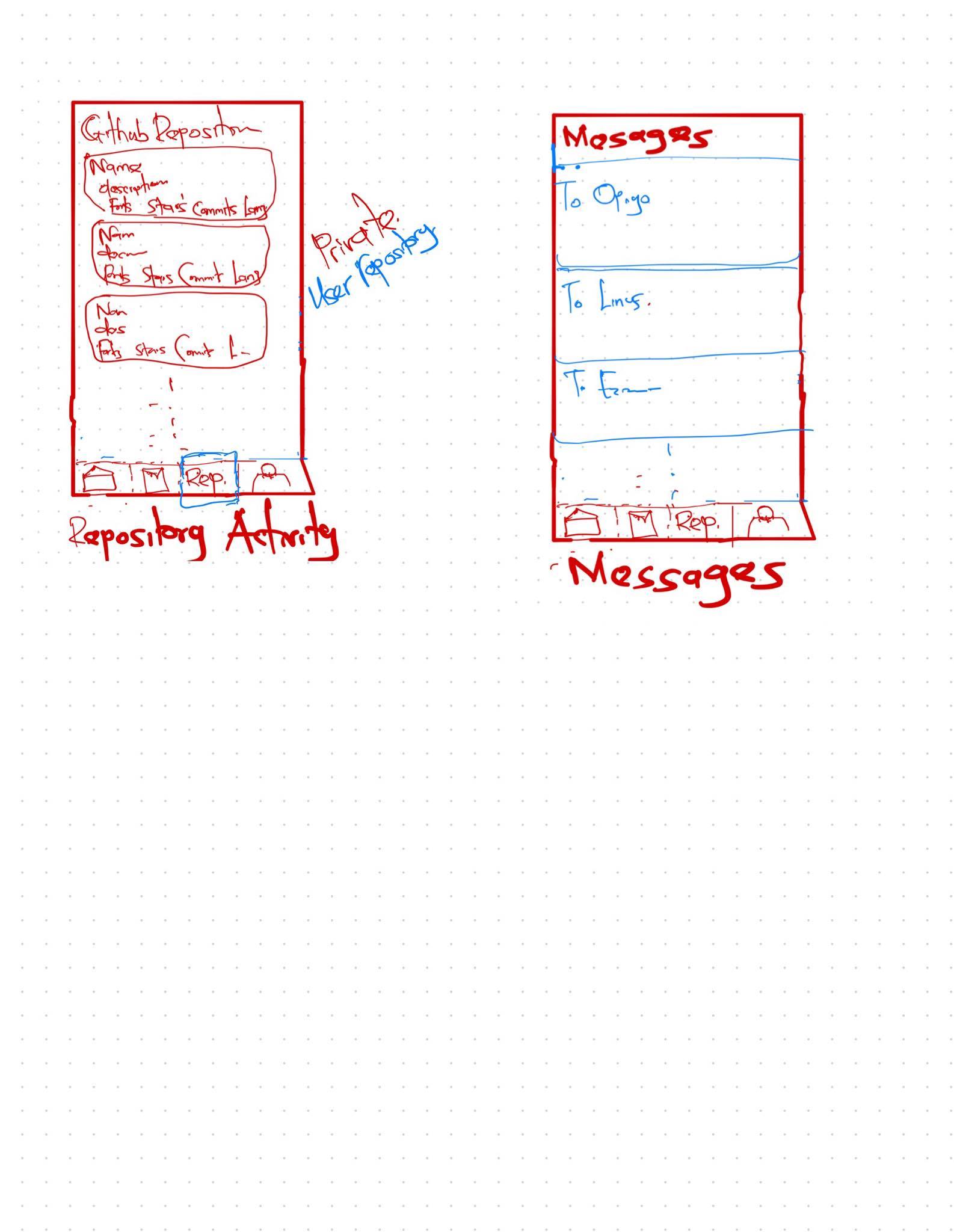 - User can switch to the repo fragment where they’ll be able to see all their repositories in a recycleview