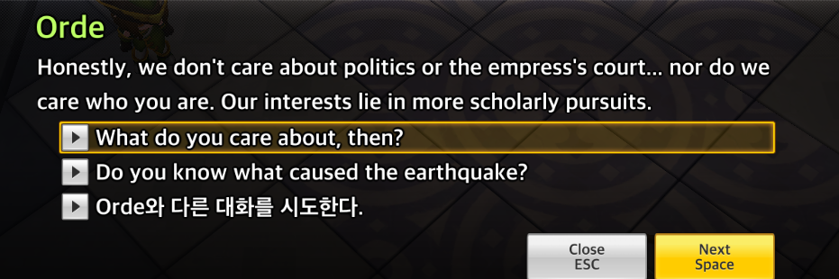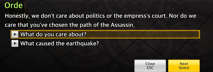 OrdeIn Grand HallOrder in grand hall has different dialogs depending on what job you are.