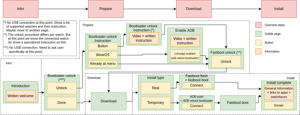 Issue by @MagneFire: "After a discussion on Matrix the following flow diagram was devised. I think this follows nicely and clearly all possible instructions for the user."