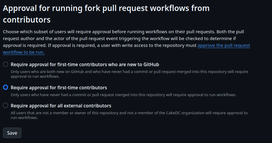 @steinkel Could you maybe change the default in github settings for this repo to not require manual workflow runs? I think I usually select it to "only for new members" or something. |