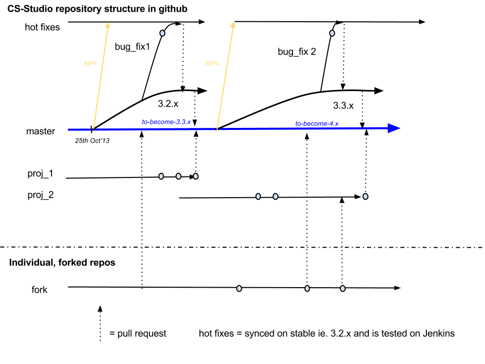Once a project is ready to be incorporated into a release it is added to the master (release preparation) branch via a pull request