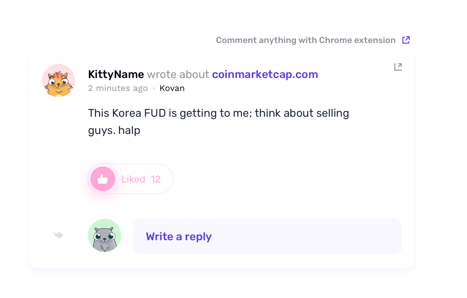 Once the extension's live please add the link to it in the specific type of post. <img width="759" alt="screen shot 2018-05-11 at 11 29 38" src="https://user-images.githubusercontent.com/6234032/39917676-9d29dc82-550e-11e8-8413-bd0bccf06366.png"> Space between the link and the tile is 10px, it's also on Invison. [newtab.svg.zip](https://github.com/Userfeeds/cryptopurr/files/1994733/newtab.svg.zip)