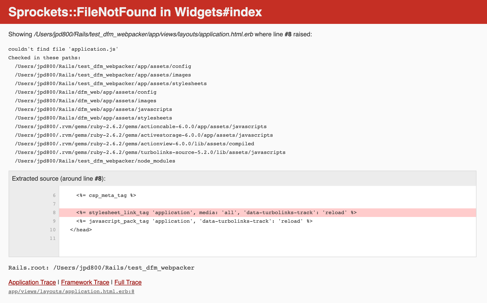 A vanilla Rails 6 app includes webpack by default. There is some incompatibility with the way we're loading javascript here. I don't have any apps with Webpack enable yet. Help Wanted. :) <img width="1020" alt="Screen Shot 2019-10-28 at 10 01 29 AM" src="https://user-images.githubusercontent.com/382216/67689919-0d823f00-f96a-11e9-9ac0-95820a4eb809.png">