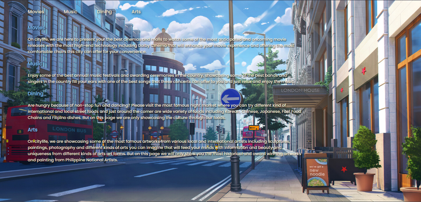 Citylife Website An assigment about doing a citylife multiple page website My CSS files are somehow gone so the effects are gone too.