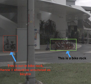 - Bicycles that are not part of the rack should not be included. Instead they should be annotated as bicycles separately.