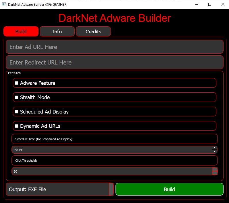 Disclaimer: DarkNetAdware is designed strictly for educational and ethical purposes. By using this tool, you agree to take full responsibility for any actions performed with it. The developers and creators of DarkNetAdware are not liable for any misuse, damages, or legal issues that may arise from its use. Ensure you obtain explicit consent from users before deploying this tool and comply with all applicable laws and regulations regarding adware and user privacy. Use at your own risk.