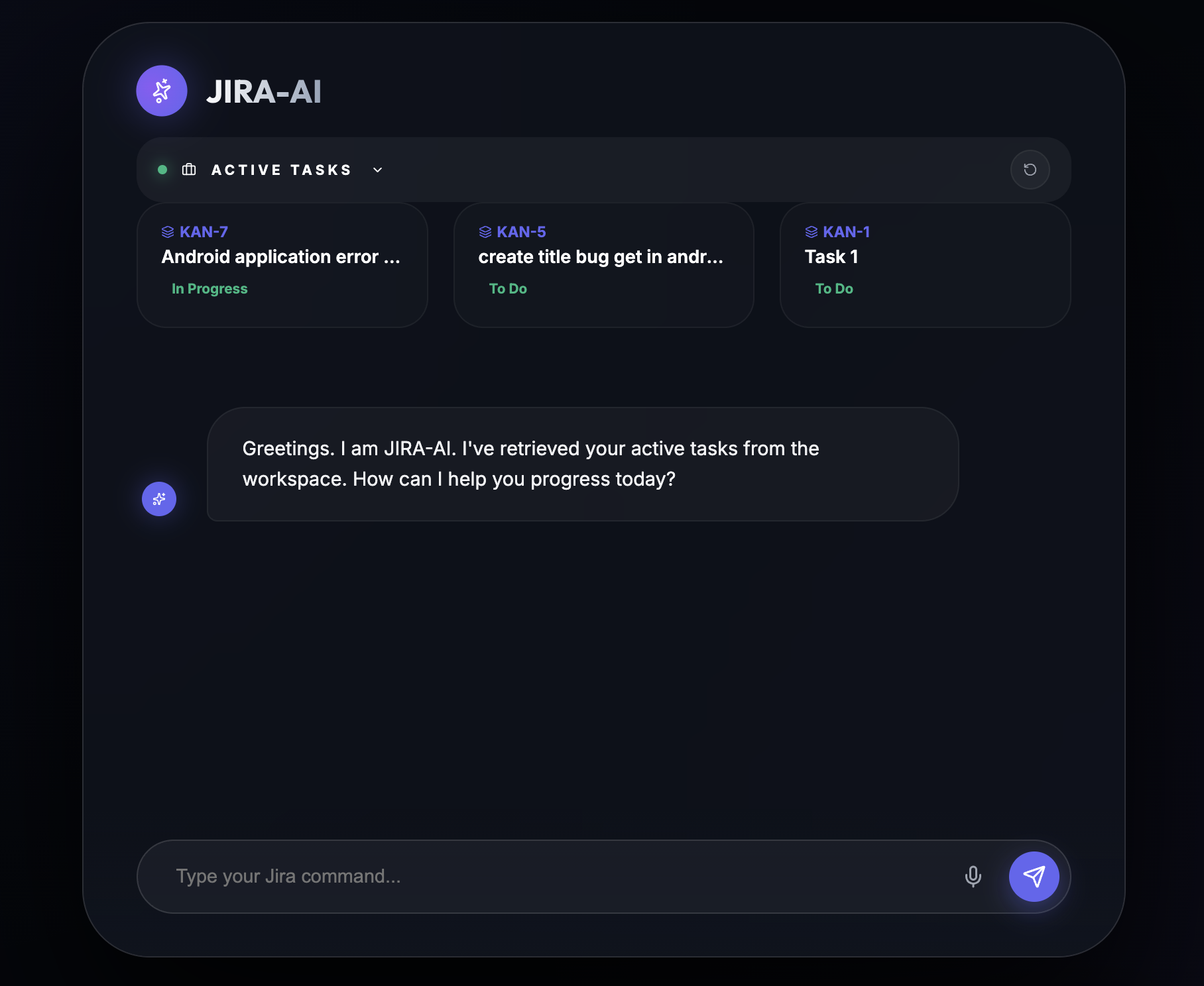 - Auto-Summarization: If you send a long paragraph about a bug, JIRA-AI automatically distills it into a professional 5-word title for the ticket and keeps the original text as the description.