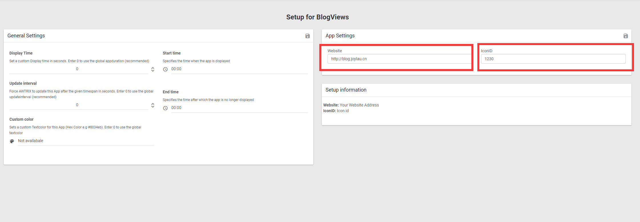 Getting Started BlogViews 一款显示个人博客访问人数的 App 效果图 博客地址: http://blog.joylau.cn/2020/08/02/Awtrix-BlogViews