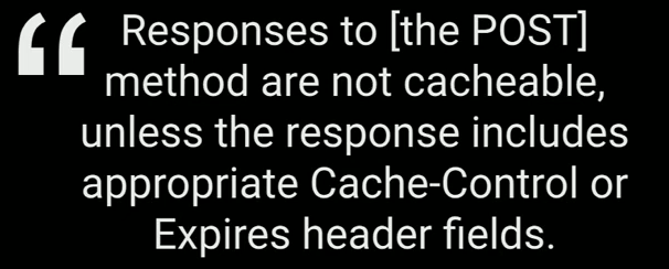 - 其實 HTTP spec 沒有限制 POST method 不能 cache,只是在 cache 的地方 (E.g. nginx) 要設定好