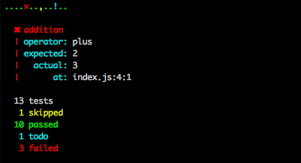 - tap-spot: Minimal output for non-errors and human readable reports for errors marked as TODO or ERROR