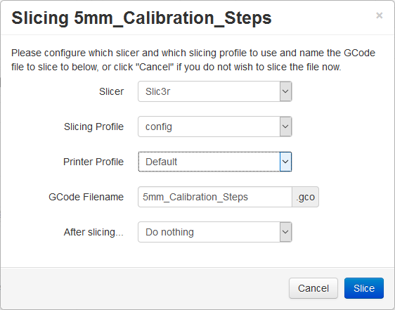 - Linux: Slic3r's stable versions 1.1.7 and 1.2.9 (tests done under a Raspberry Pi 2, but it should work for other Linux distributions).