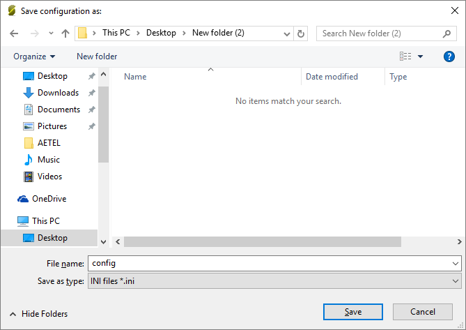 Save the file with the desired name (e.g. config.ini):