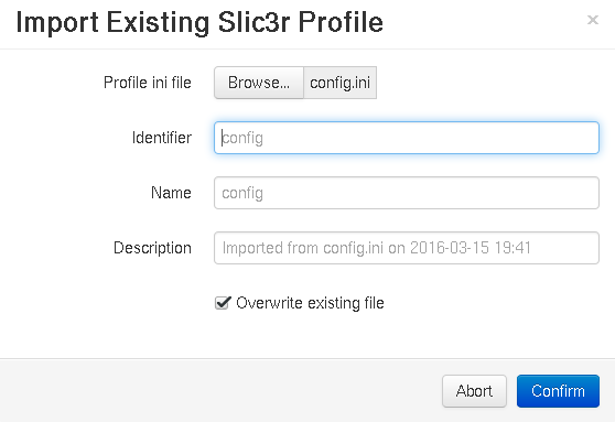 Click on 'Browse...' and search for the profile. Once done, save with the name and identifier wished by clicking 'Confirm':
