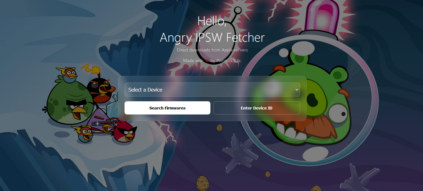 This project provides a streamlined web interface to browse, identify, and fetch IPSW files directly from Apple's servers. Designed for speed and ease of use, it removes the friction of finding the correct firmware for your iPhone, iPad, or iPod Touch.