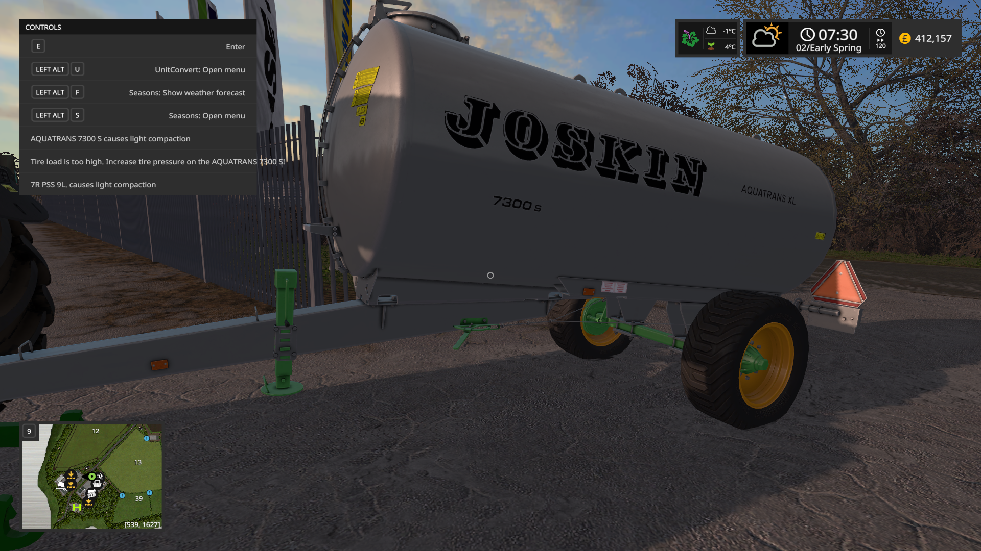 when filling the vanilla water trailer, Aquatrans 7300S with water, warning comes up saying "Tire Load too high Increase tire pressure on aquatrans 7300S!" ive tried to lower and increase the pressure, still the warning remains and reduces speed to 7mph. doesnt seem to have a happy tire pressure where it allows the trailer to function correctly