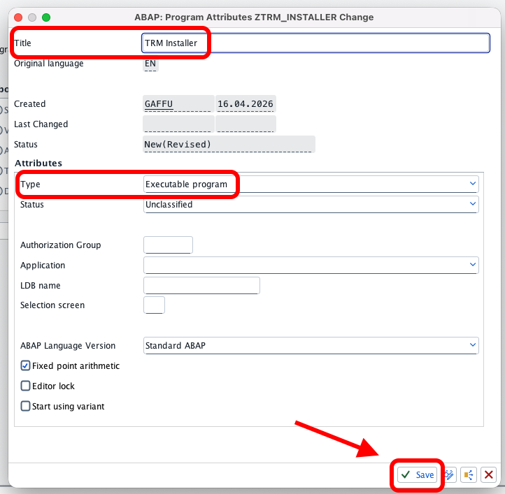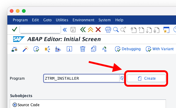 SE38and create a new report calledZTRM_INSTALLER