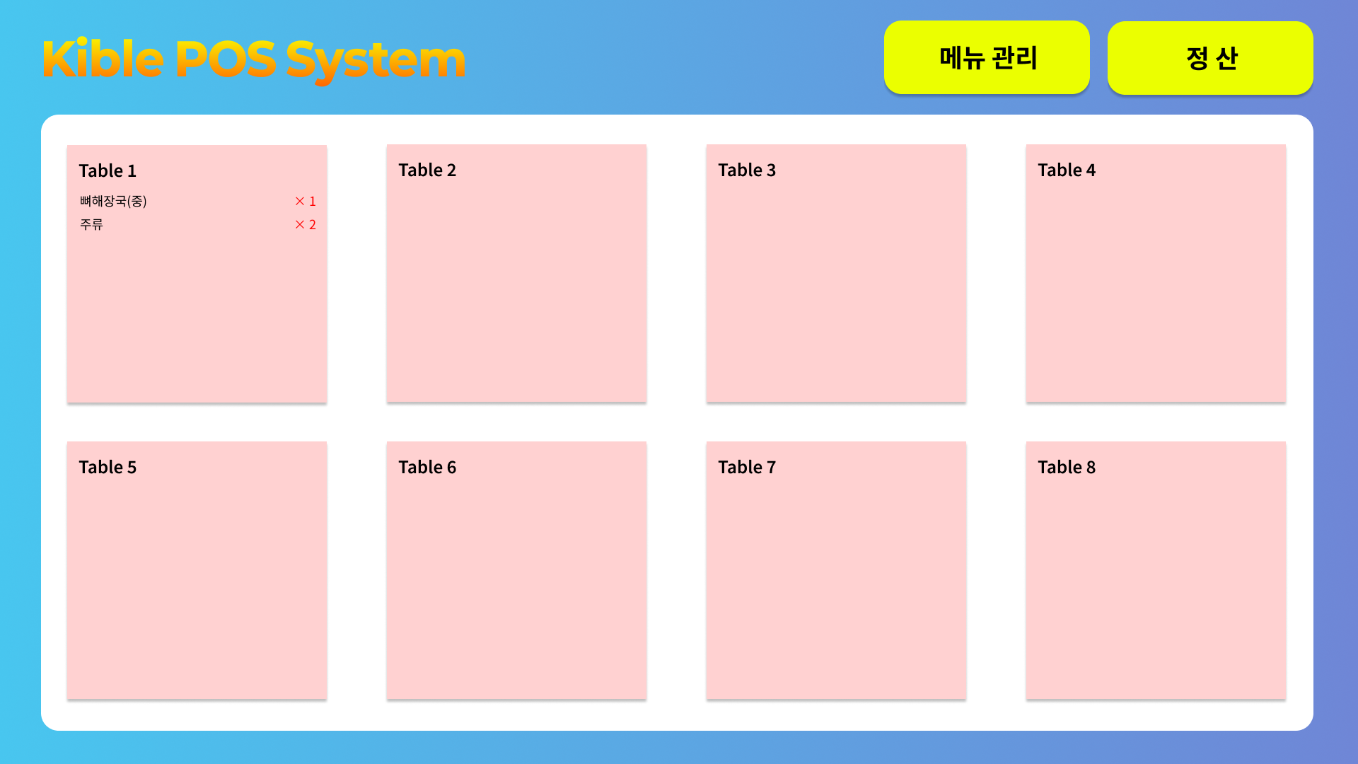- 프로젝트명: Kible: 음식점 QR-Code 모바일 주문 시스템