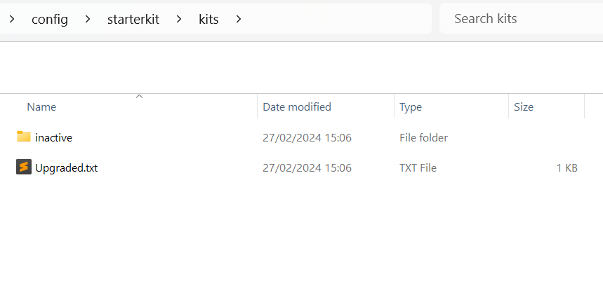 Here you can see the new starter kit data file that was created with the previous command. It's located in './config/starterkit/kits/':