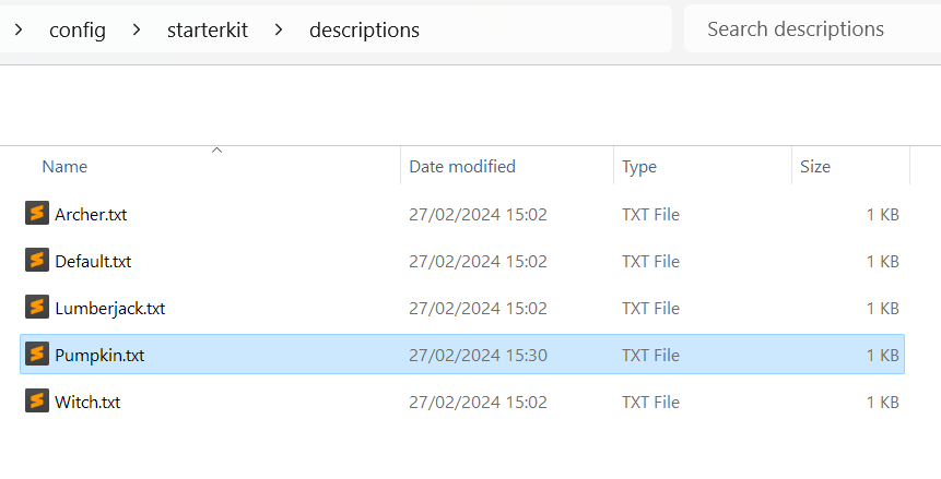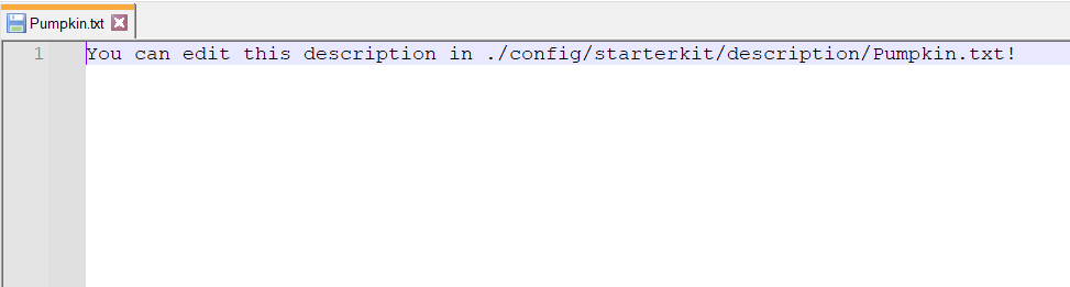 Open the description file with the kit name you've just set. In my case, the file is './config/descriptions/Pumpkin.txt'.