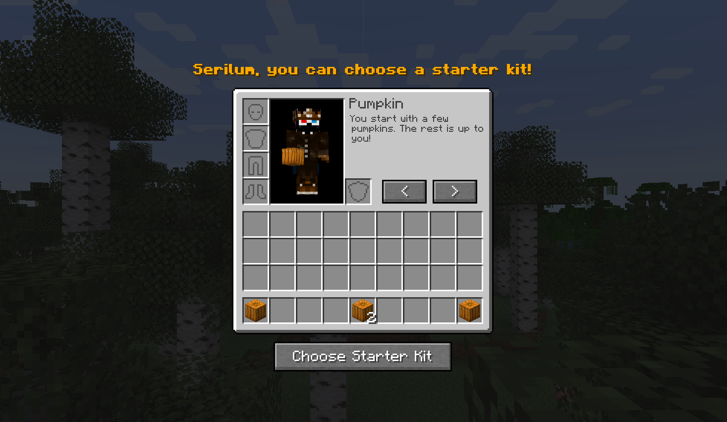 Since everything contains default values, you can immediately see it working! Load a new world, and you'll be shown the choose kit screen:
