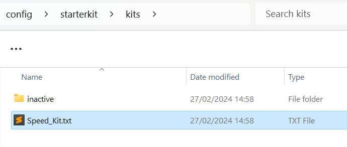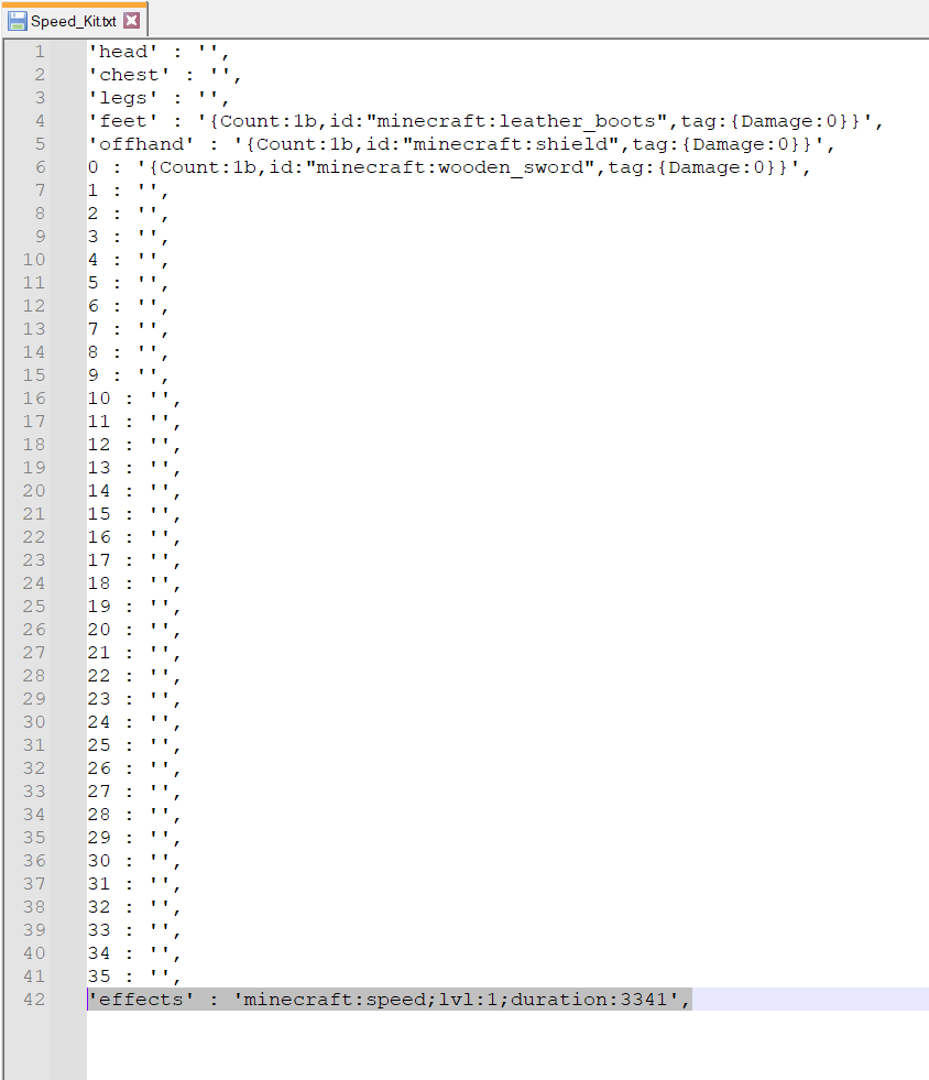 Locate and open the kit we've just created. The path is './config/starterkit/kits/Speed_Kit.txt':