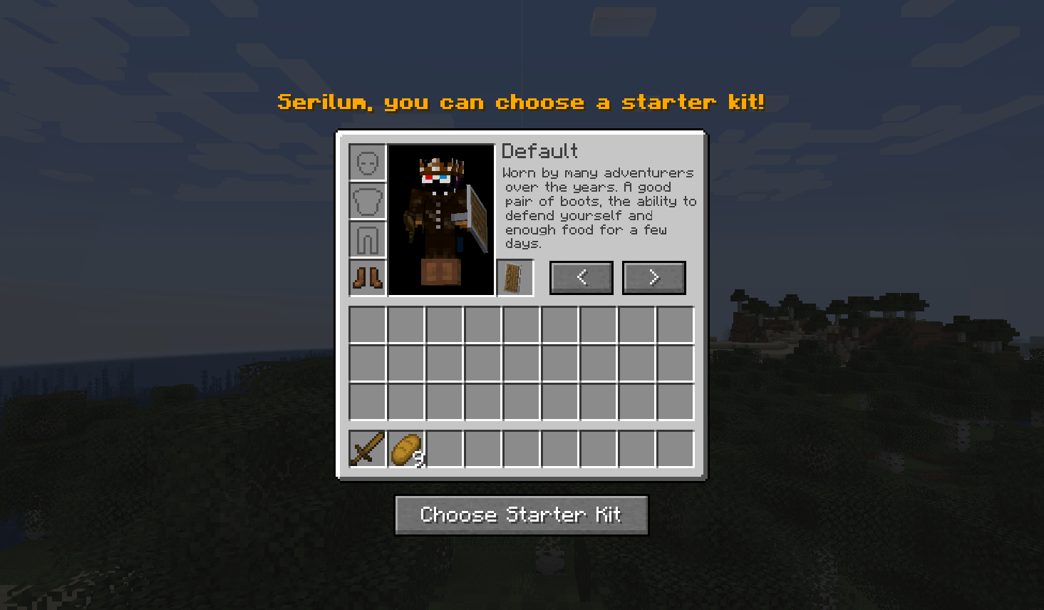 Set a custom starter kit. Add/Remove starter items from other mods. And giving players a starter kit via commands.