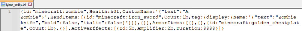 If you'd like to spawn an entity that's less simple, for example with a custom name or custom items, you can make a reference to a file containing that data.