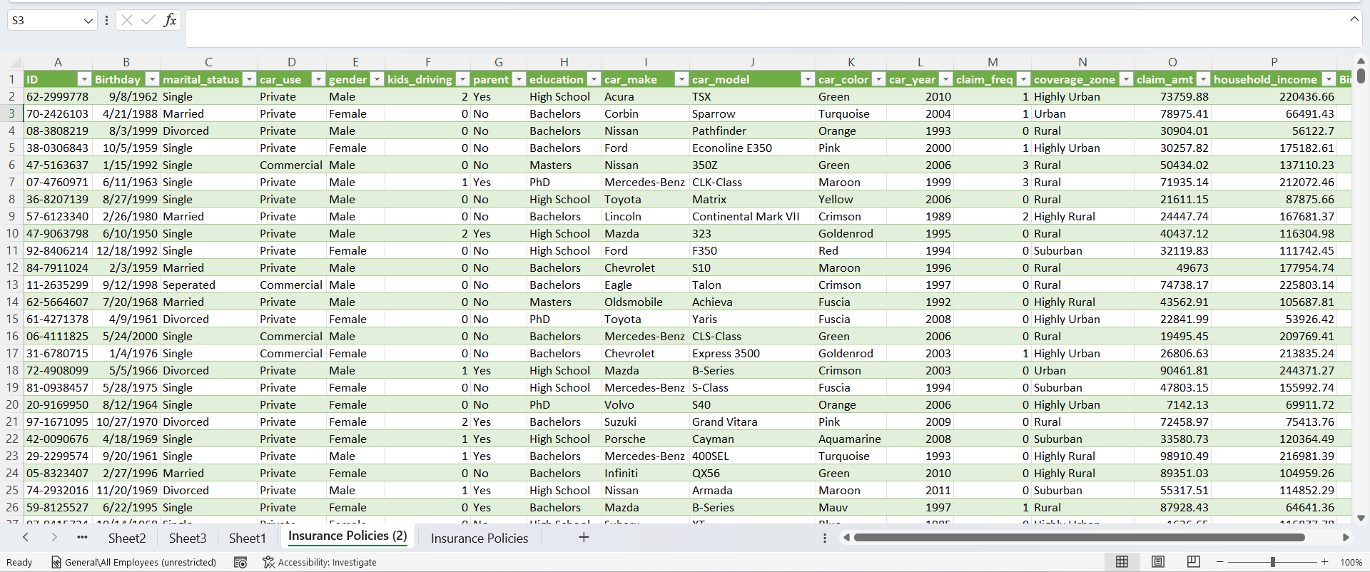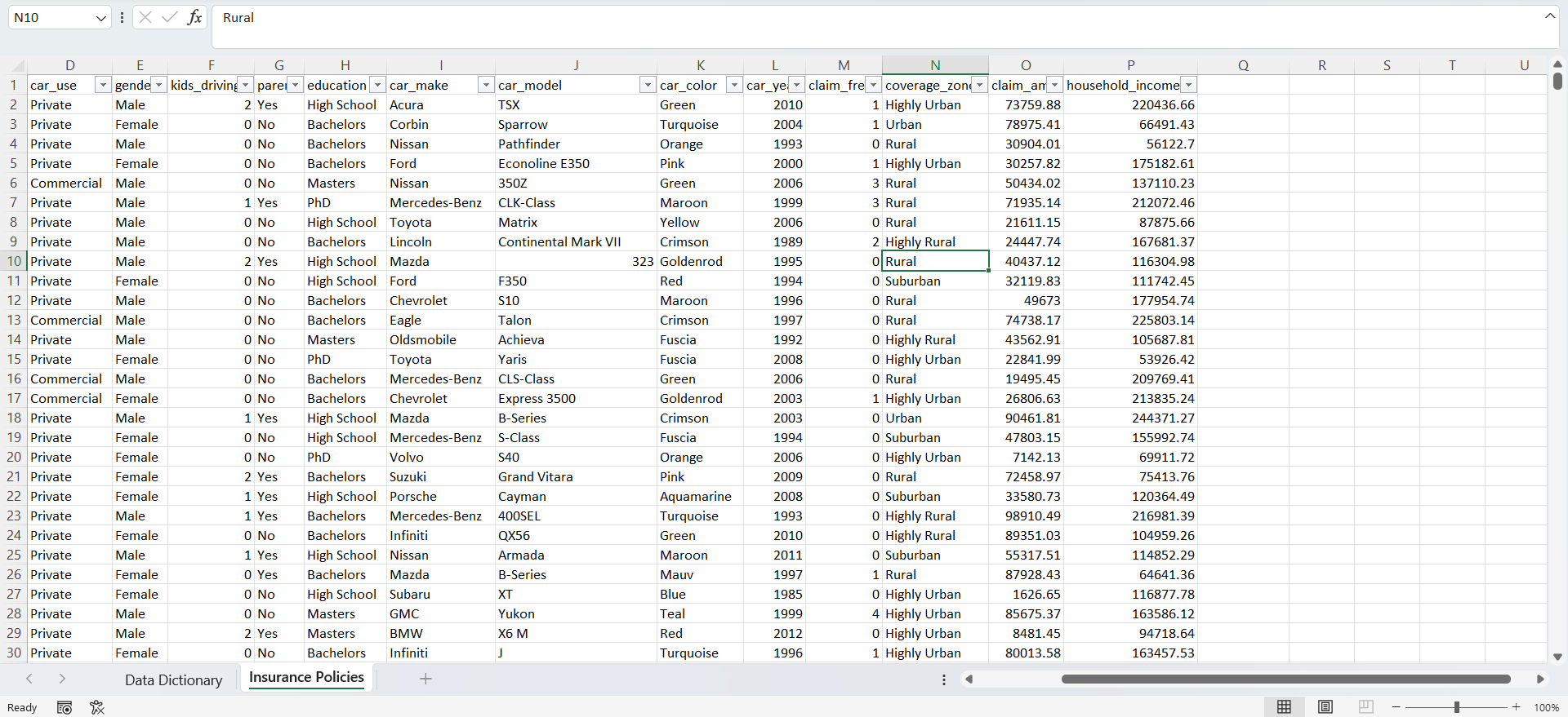 The car insurance claims data is a fictitious data compiled by Onyx data for data analysis challenge of August 2023. Together with a group of like-minded analysts, we decided to analyse the data using Microsoft Excel.
