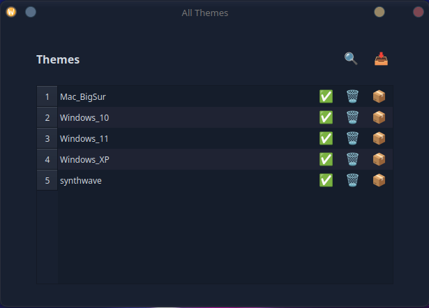 - Apply a Konsave theme configuration from the list (supporting immediate application*)