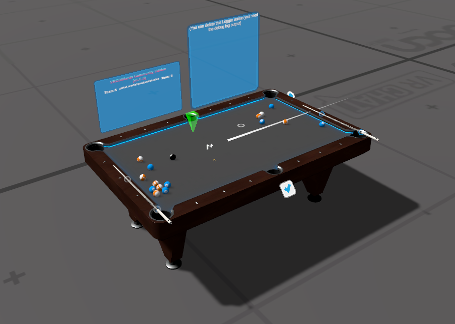A pool table for VRChat SDK3 worlds. Want to play 8 Ball, 9 Ball, or Japanese or Korean 4 Ball? This is the prefab for you! With the power of the Udon Networking Update, you can even have several tables in the same world without issue!