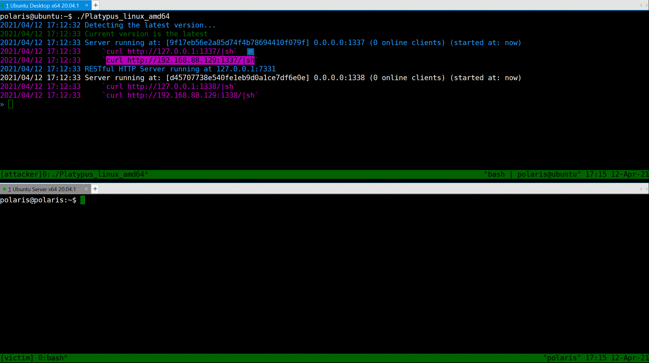With platypus, all you have to do is just copy-and-paste the curl command and execute it on the victim machine.