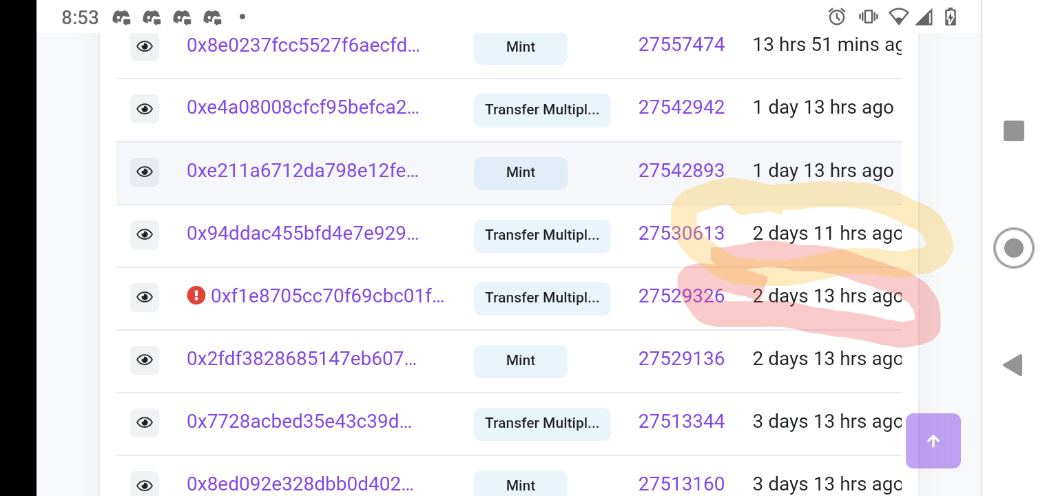 - Look at actual contract transaction history for 8 August 2022, showing a failed reward distribution call around 12:22pm UTC, and a subsequent successful transaction around 2:37pm