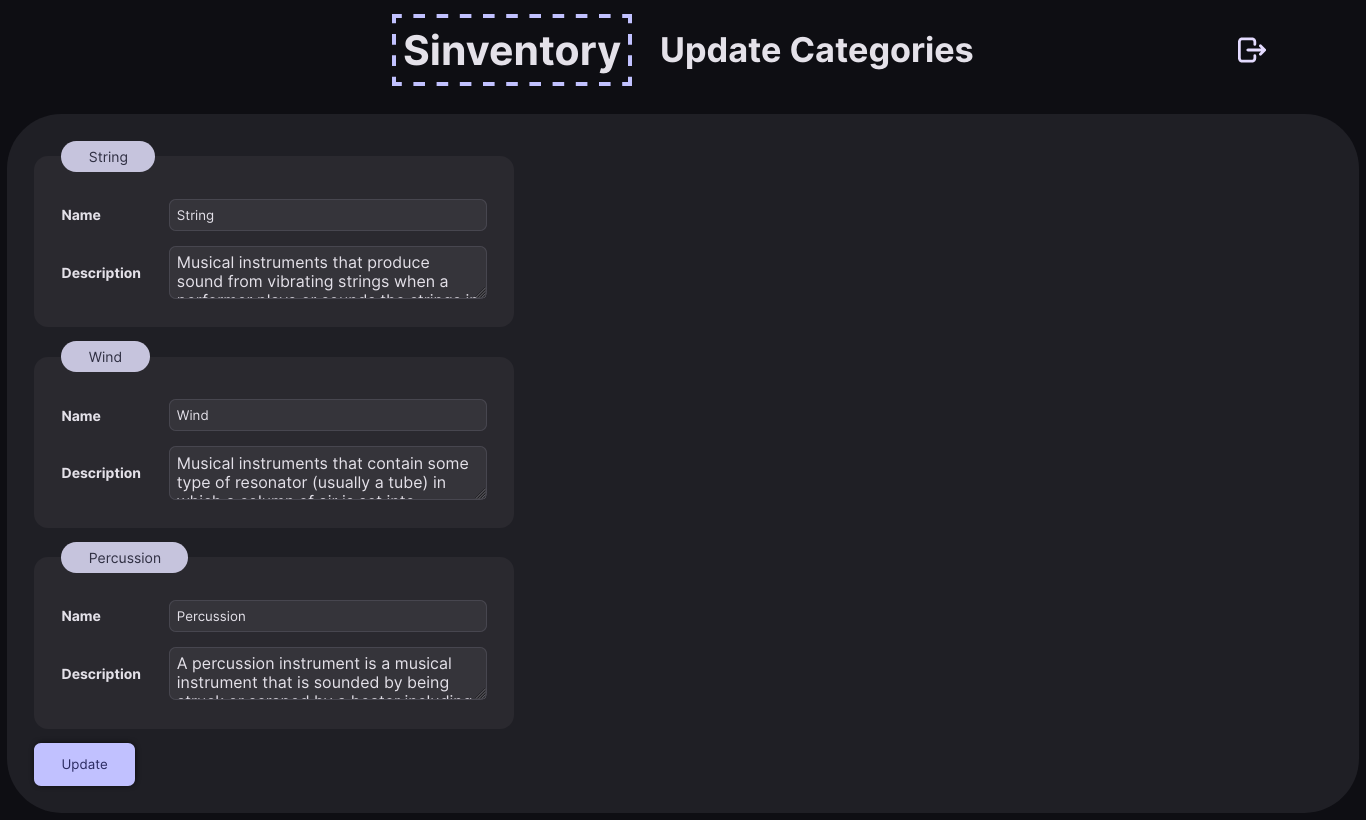 An inventory management website where authorized users can filter and view musical instruments based on their type(string, brass, wind, etc.) and modify their info(count, picture, name, type). I did this project as part of my full-stack web developer course called "The Odin Project". The course gave a general overview of how the website should work; I implemented all the required features and some more, like image upload.