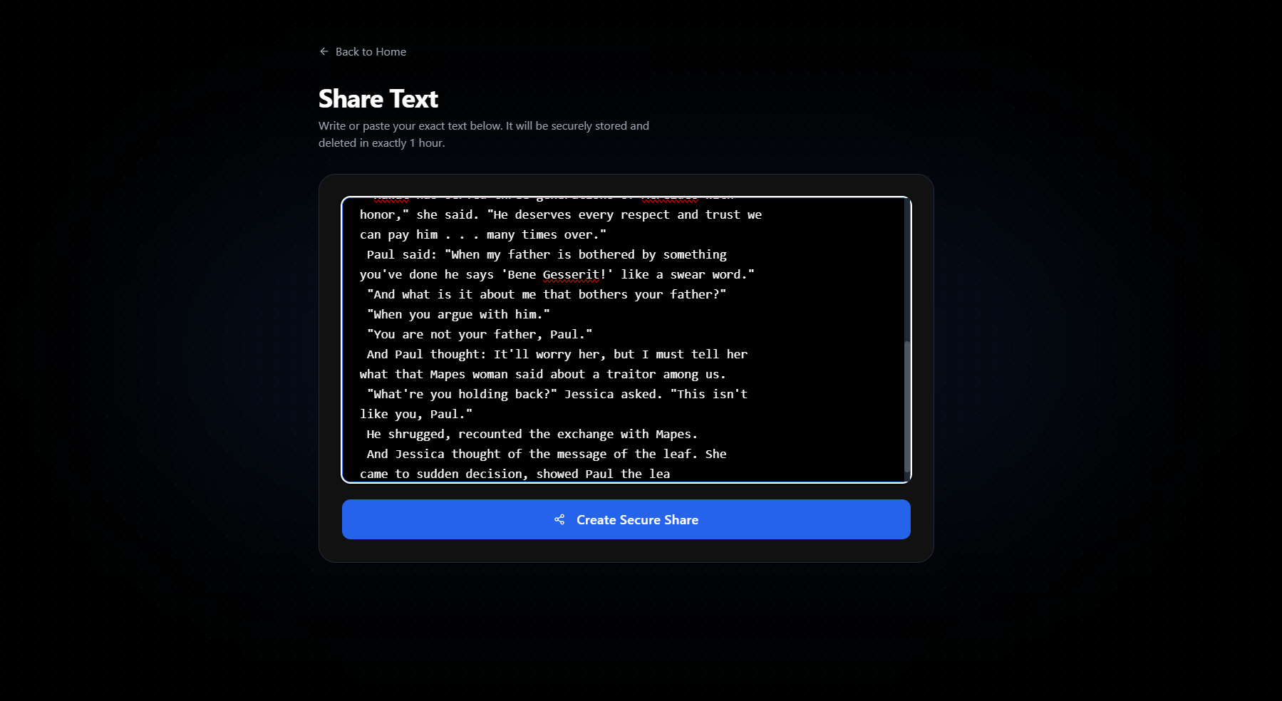- 5-Digit Access Codes: Share text with a uniquely generated, cryptographically secure 5-digit code.