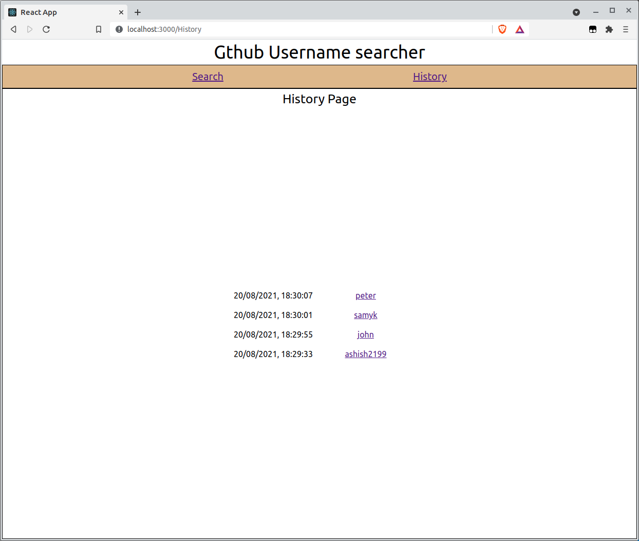 This app fetches data of github users and shows their repository. It also maintains a history of searches performed.