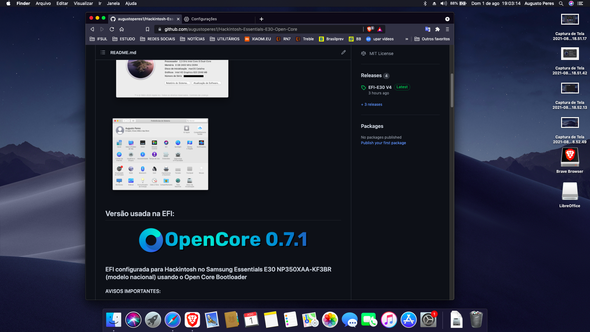 EFI configurada para Hackintosh no Samsung Essentials E30 NP350XAA-KF3BR (modelo nacional) usando o Open Core Bootloader