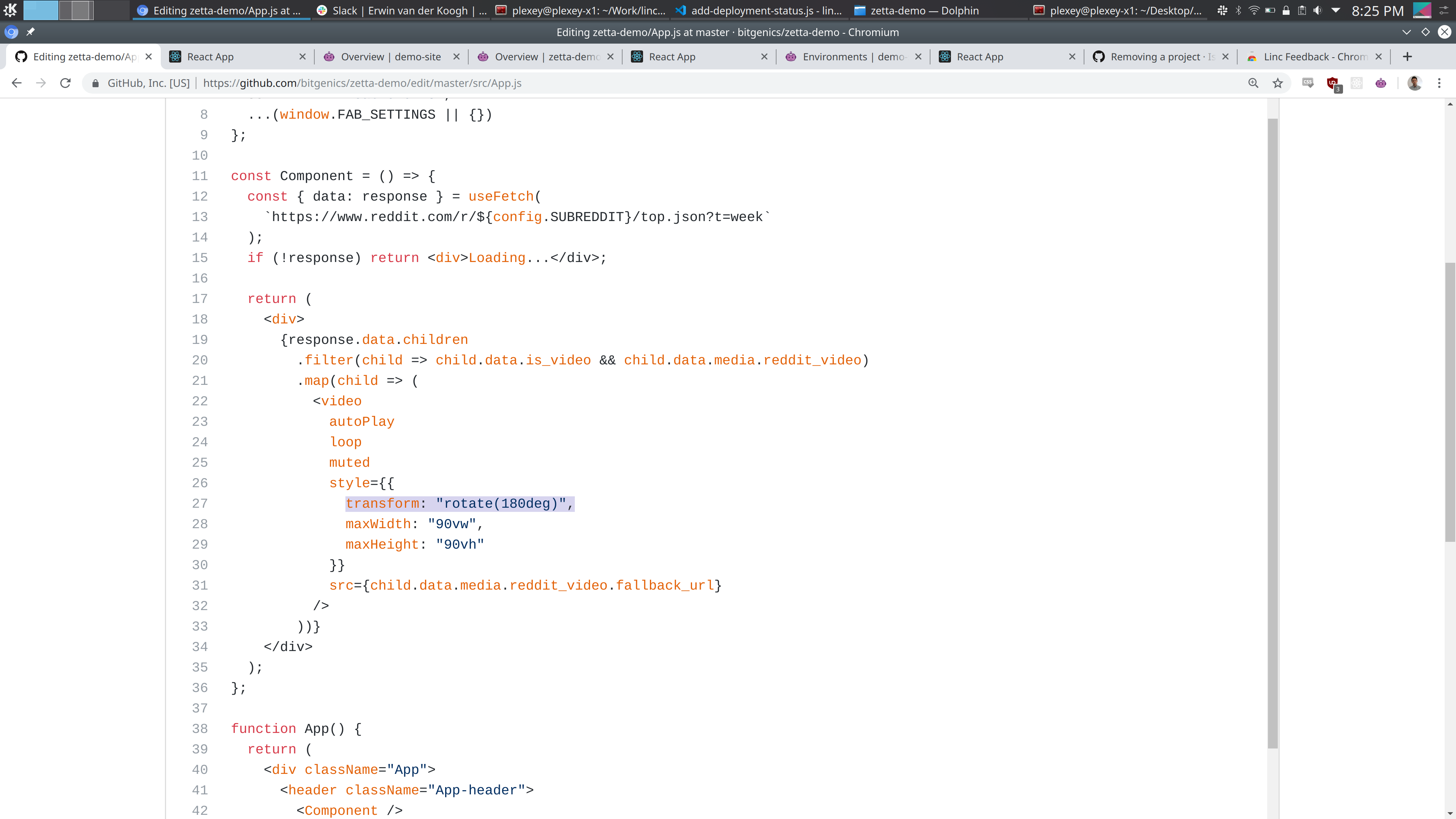 One of the core features of Linc is to provide teams with a preview link for every commit against every backend. In this demo we have simulated that by making the subreddit configurable. In a real application you would make things like API urls, and api keys for services like Stripe, Sentry and Rollup configurable.