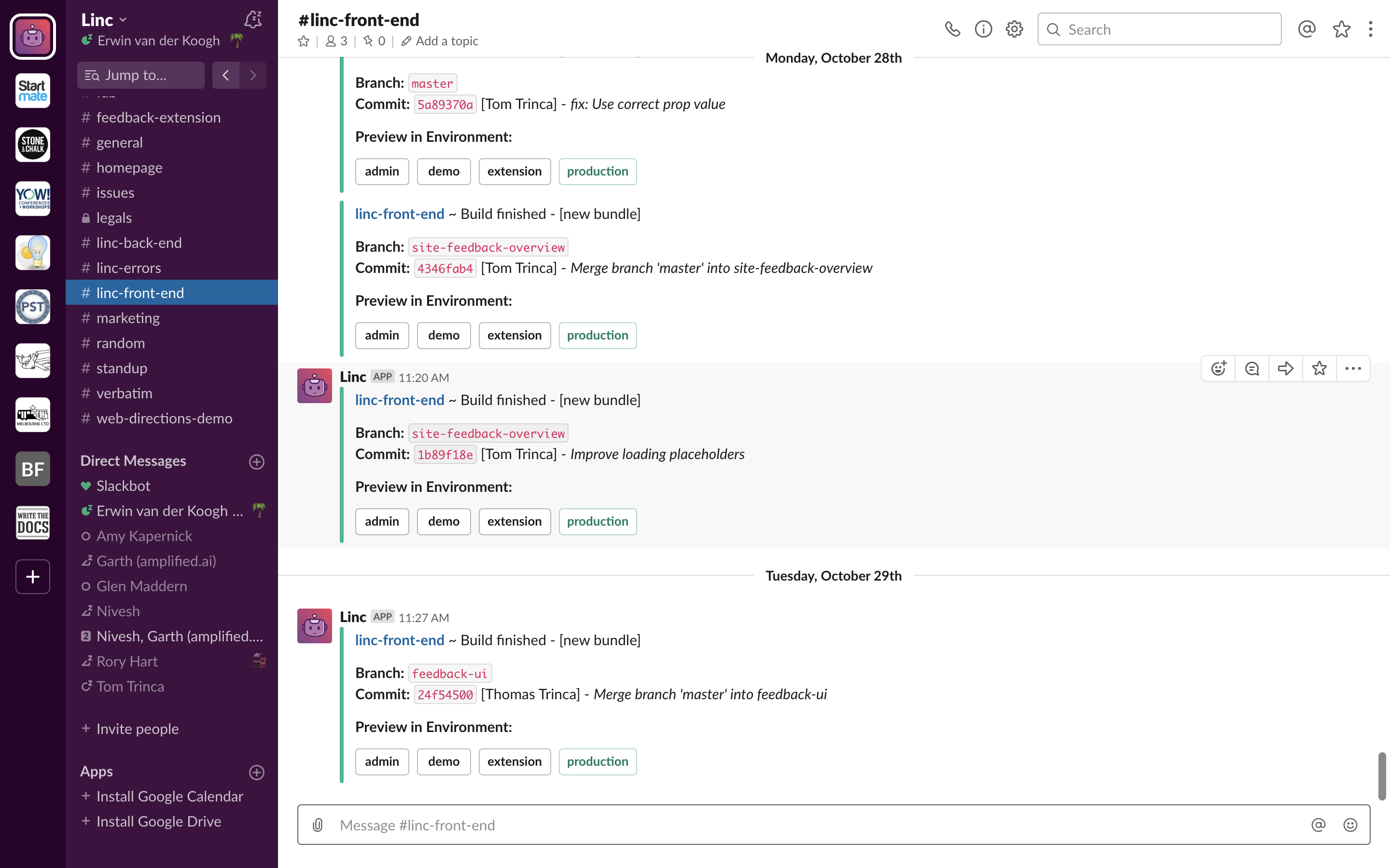 One it is finished you should see a message in your Slack channel with the build and preview information.