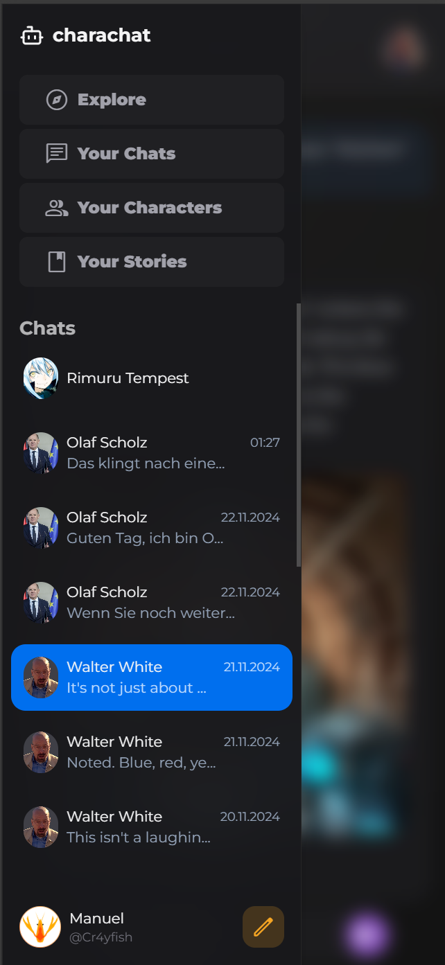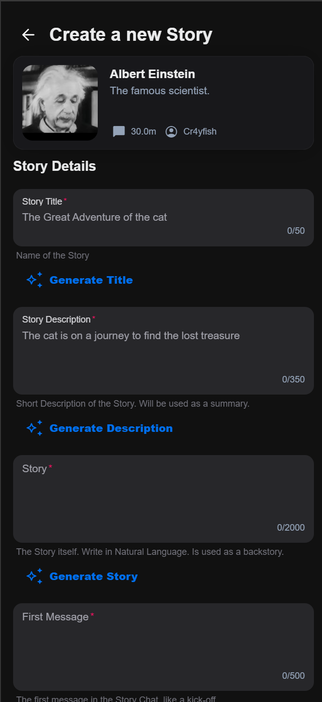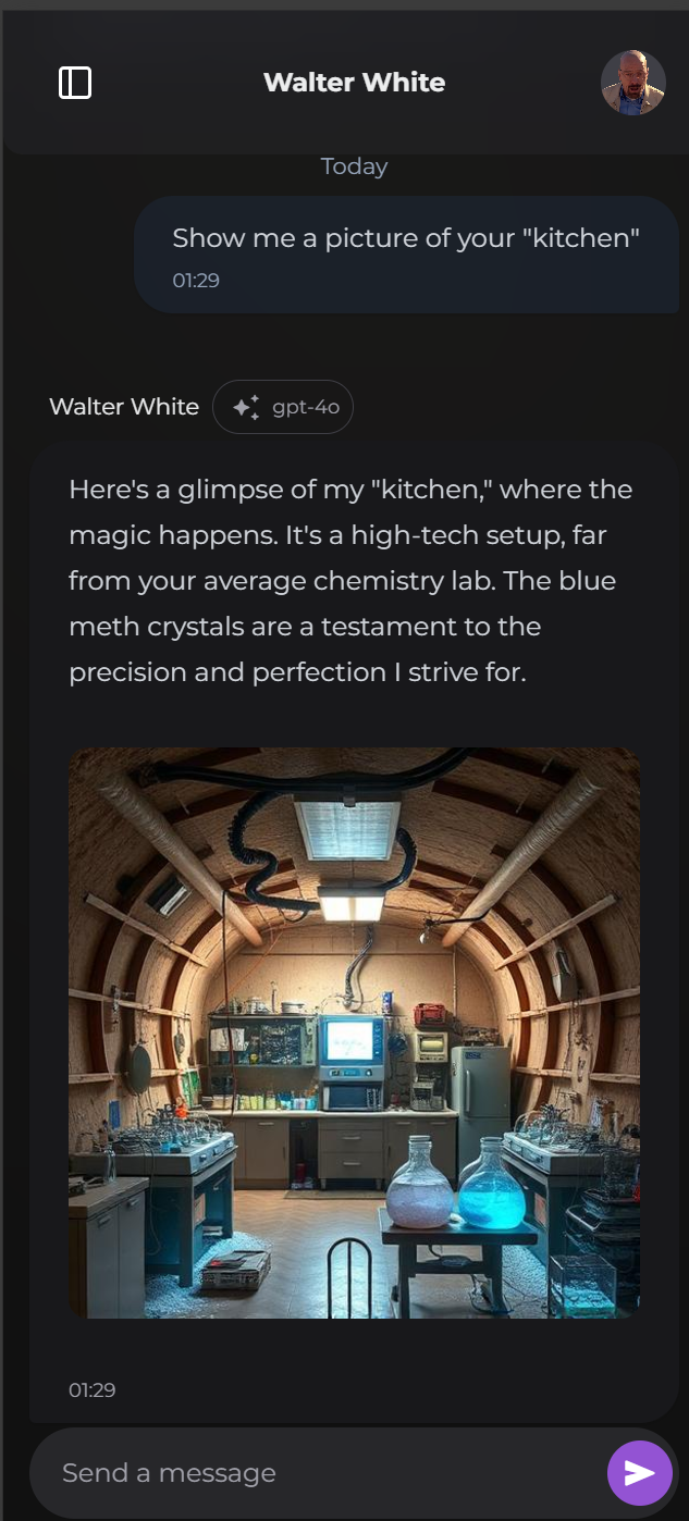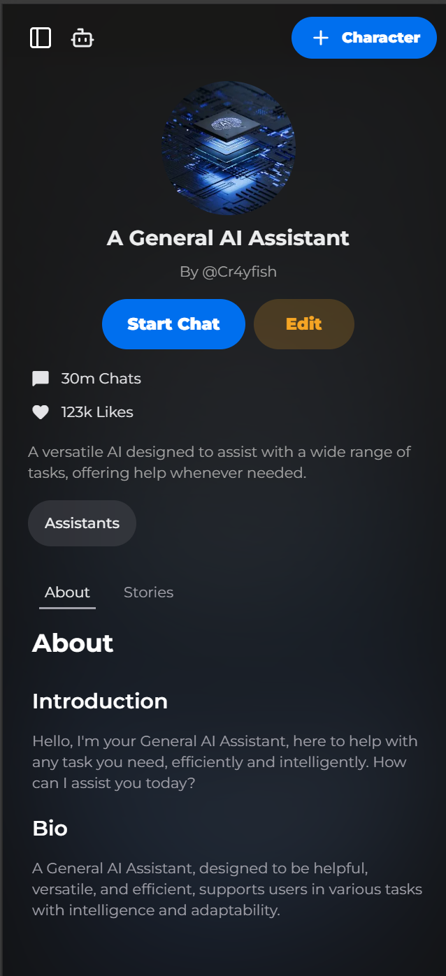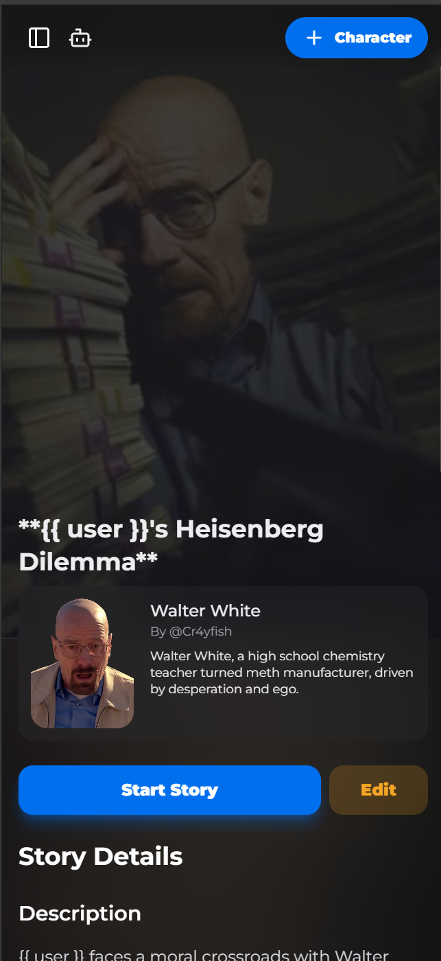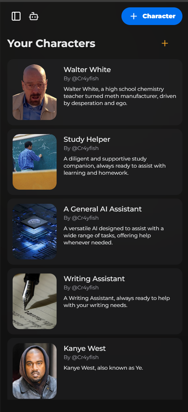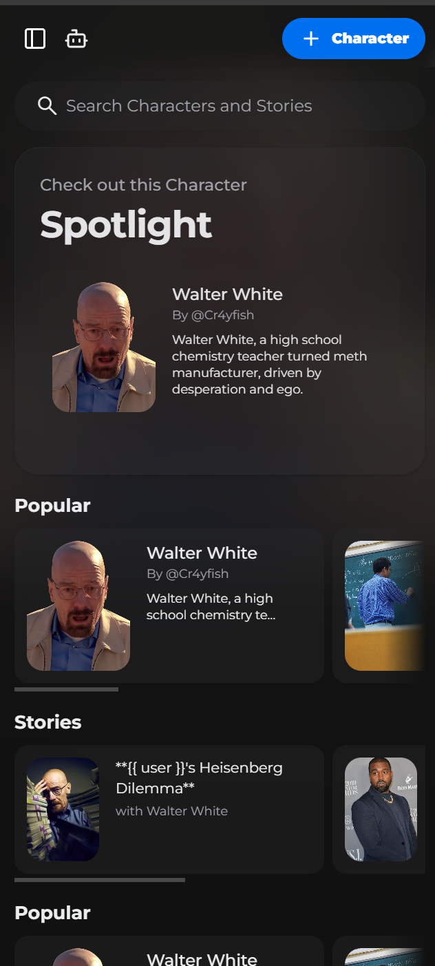 Lets you create a character or use a pre-made one and chat with them. The character will respond to you based on their personality and remember things you've said to them. This lets you have a dynamic and personal conversation with a character.