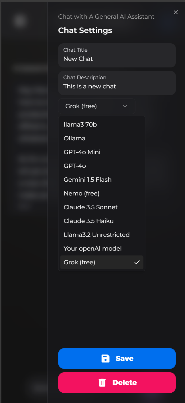 - When creating a new Chat, make sure to only use LLMs for which you have an API key