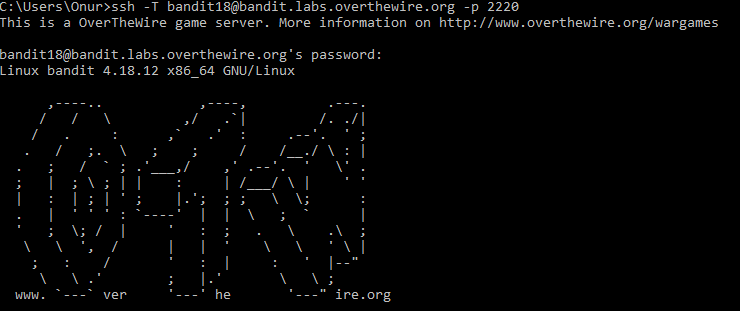 NOTE: if you have solved this level and see ‘Byebye!’ when trying to log into bandit18, this is related to the next level, bandit19"