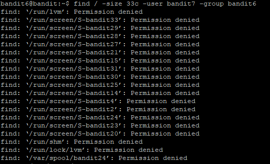 owned by user bandit7 owned by group bandit6 33 bytes in size