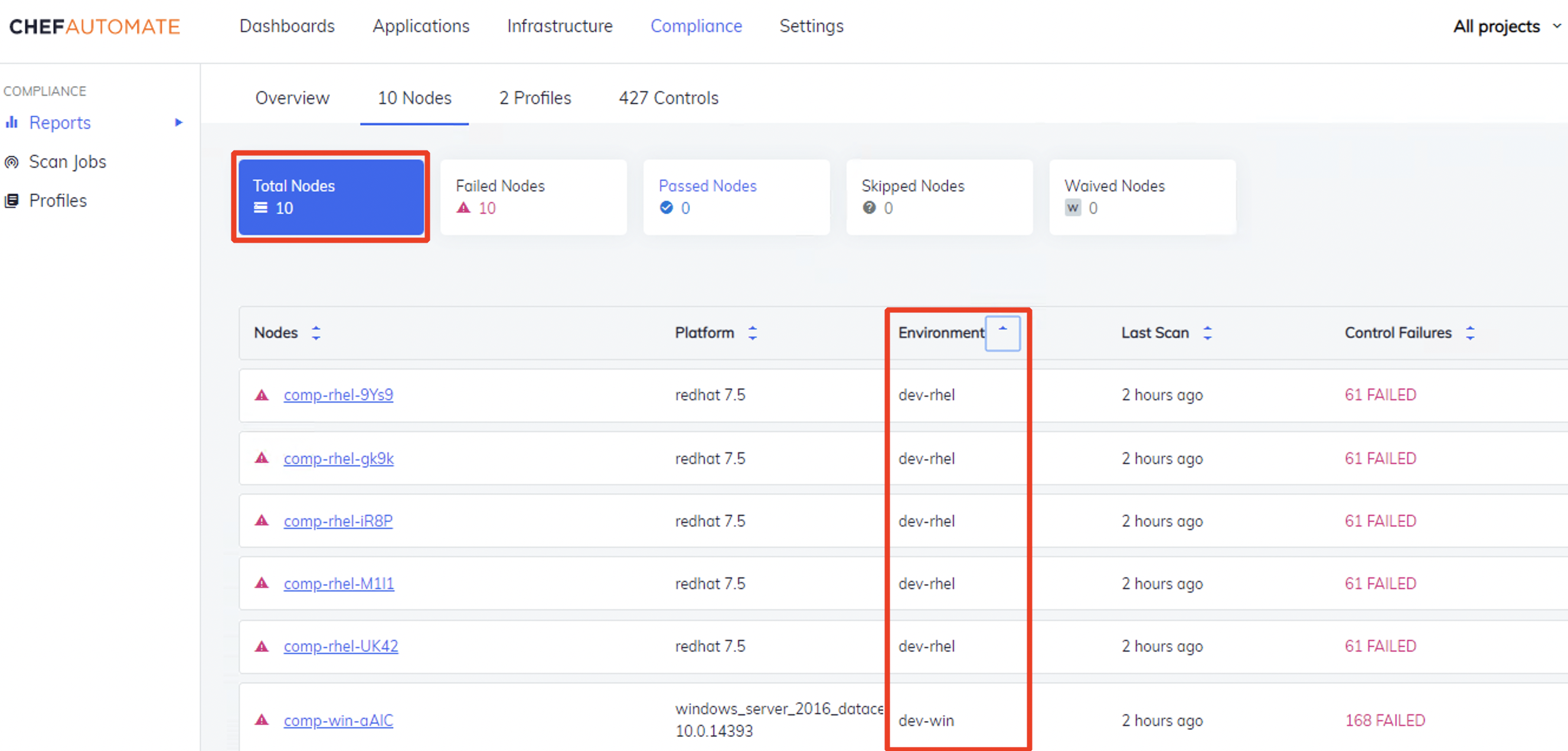 Real environments could have 100s or 1000s of nodes reporting back their compliance information.