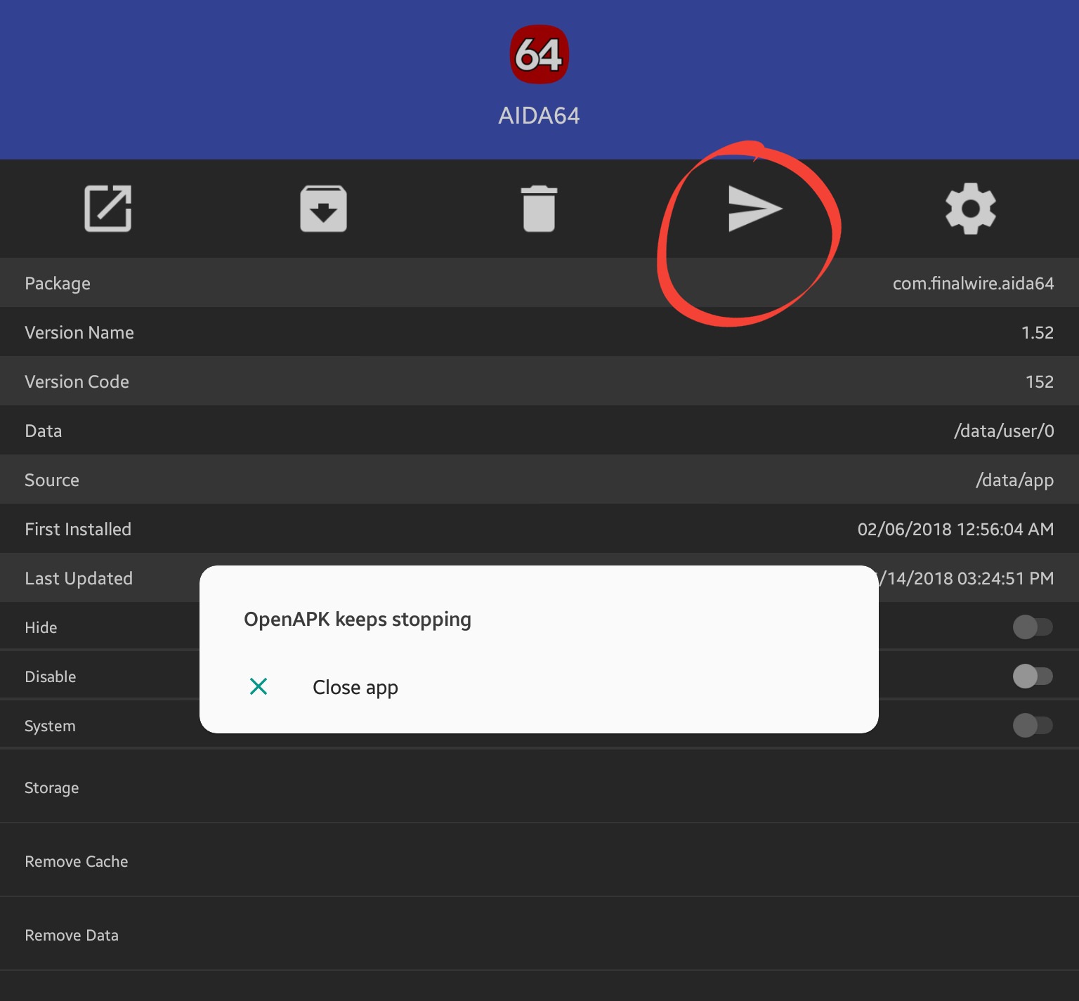 07-01 00:01:00.902 1509 1590 I ActivityManager: Showing crash dialog for package com.dkanada.openapk u0