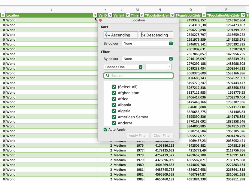 It would be nice to have filters for tabular data. Ideally we would be able to have the following features