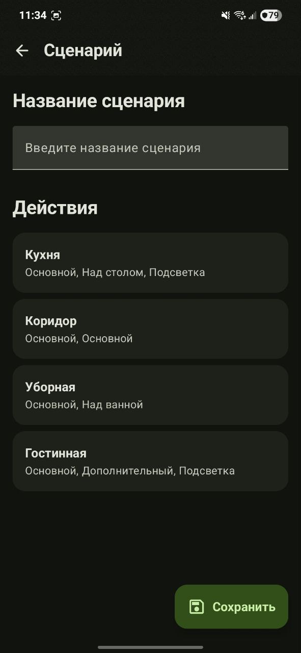 | Настройка | Главный экран | Группа | Сценарии |