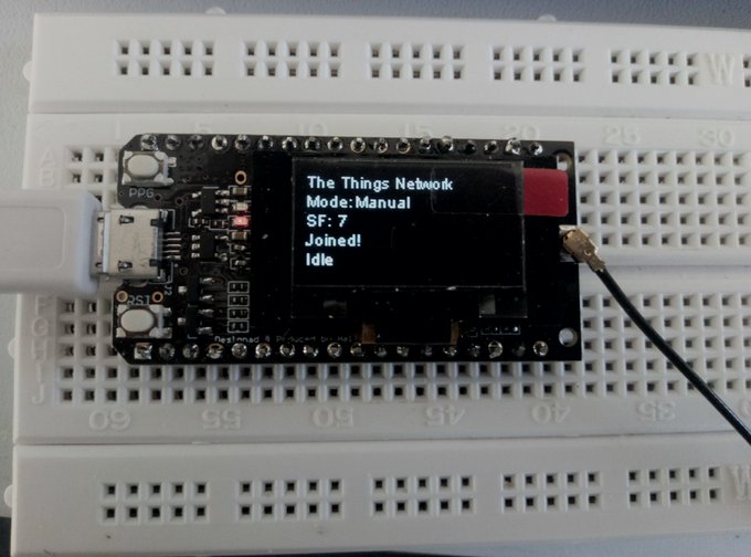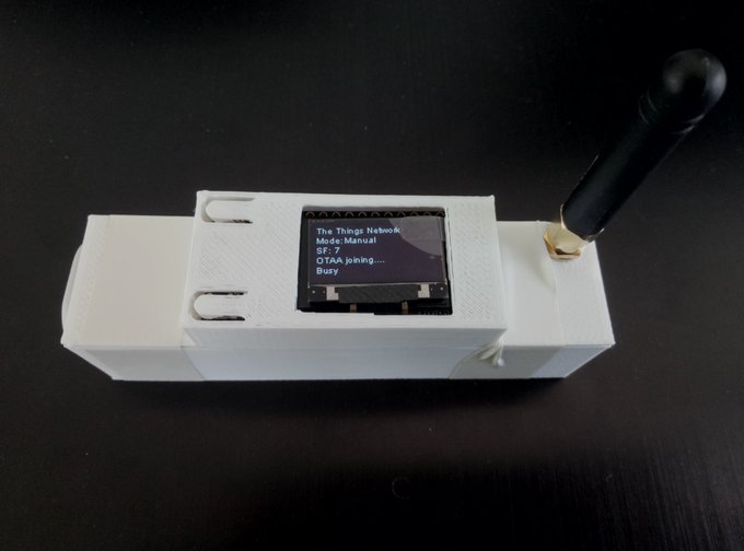 Its works with the TTGO LORA32 ESP32 OLED https://tienda.bricogeek.com/arduino-compatibles/1122-ttgo-lora32-esp32-con-oled-900-mhz.html