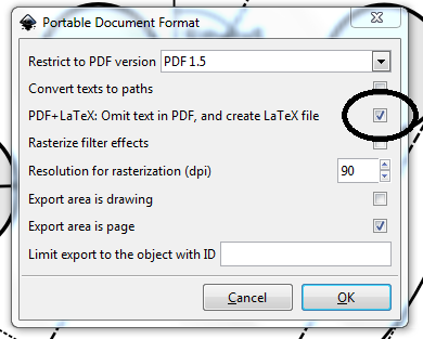 Another option is to save it as a pdf, with the text saved as latex, as shown in the following figure.