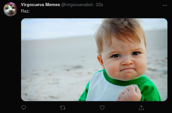 shitposter-bot Automatically Upload Discord Memes to Social Networks! Upload the meme to Discord Vote the meme by clicking the arrow, (you can change how many votes are needed for an upload) The meme gets uploaded to Twitter! This way you can have a meme page that is actively maintained by the community! ;) Discord Raz#4584
