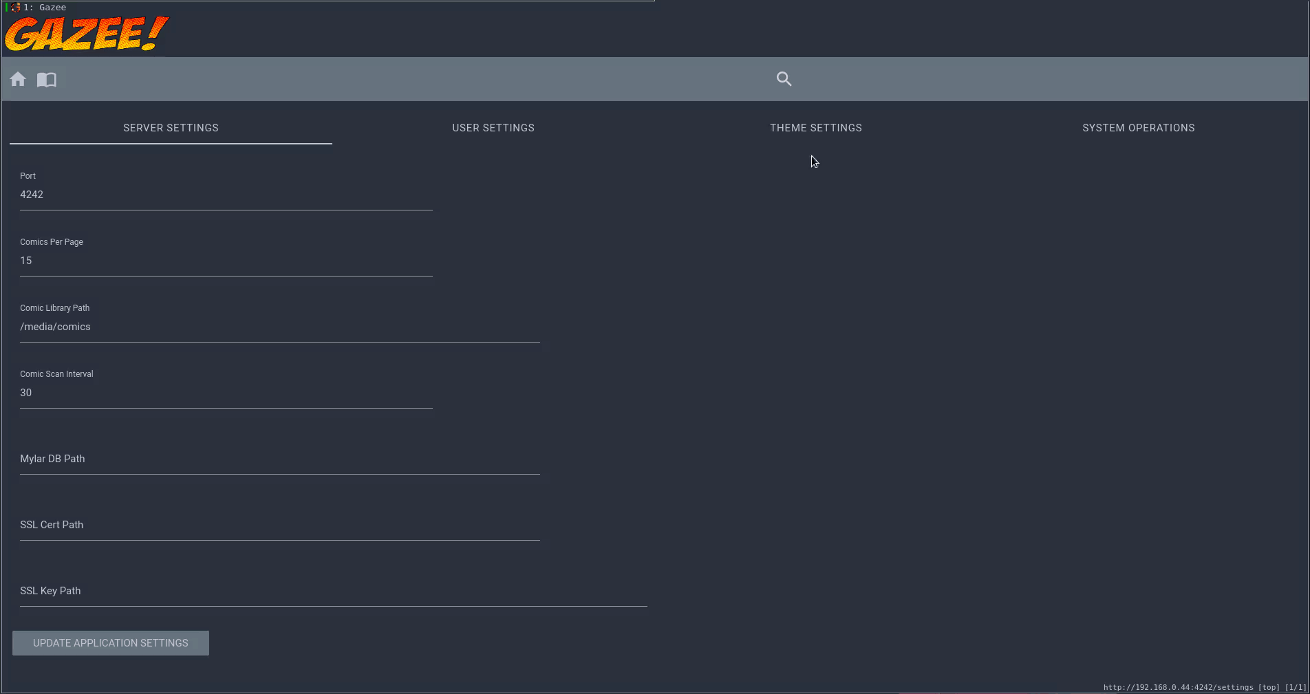 Proceed to the settings page and change your admin pass, and enter the path to your comic library and optionally your Mylar DB for better comic info extraction.